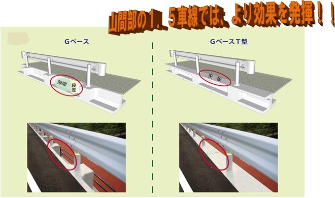 「GベースT型」は従来のGベースの品質・安全性・施工性・価格はそのままに、さらに歩行者の安全に配慮した製品です。