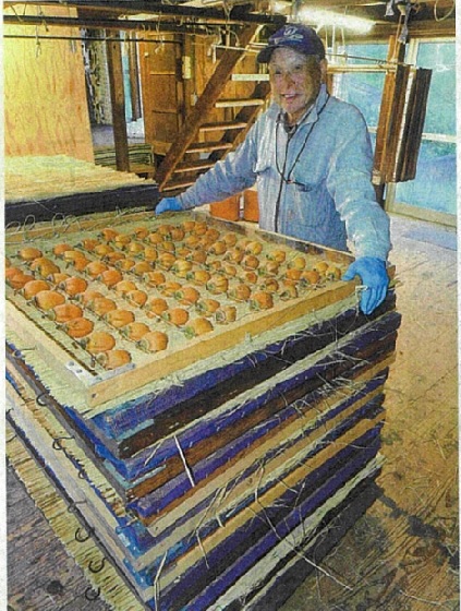 ★市内の金融機関に勤めていた約40年前、定年後を見据えて干し柿作りを決意し、会社員として働きながら生まれ育った東出雲で柿の木を育てることから始めた。干し柿作りで試行錯誤し、熟成を促すエチレンガスを出すわらに着目し、今回の製造方法を編み出した。